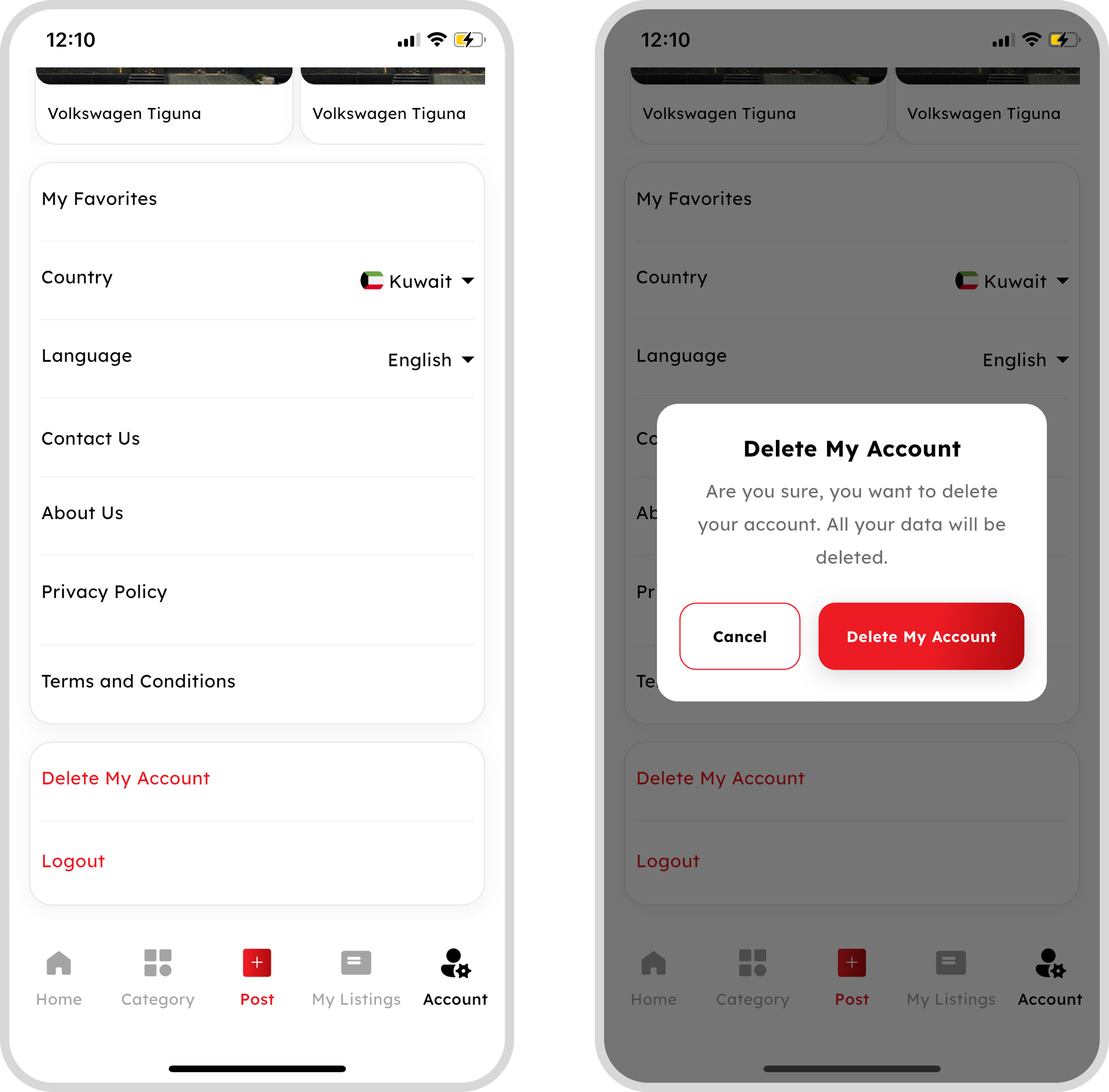 - 1. Go to "Account" from bottom menu and click on "Delete My Account"